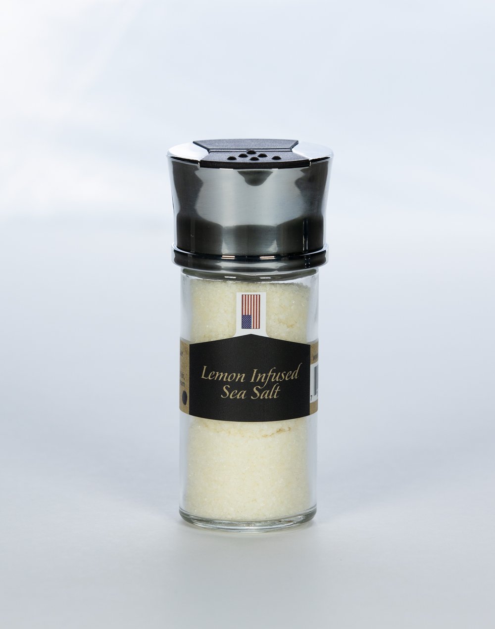 Lemon Infused Sea Salt Our Lemon Infused salt combines all the crispness of salt with the freshness of lemon. Distinct and unique, the lemon-infused crystals deliver a flavor that is perfect for use on salads, chicken, fish, and many desserts.